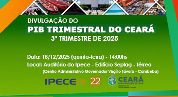 A inauguração da unidade da Casa Brasil IBGE – espaço de memória e tecnologia, que reúne em um mesmo lugar as diferentes áreas do Instituto e suas atuações – no Instituto de Pesquisa e Estratégia Econômica do Ceará (Ipece), que seria realizada na próxima terça-feira, 03 de dezembro, está adiada em consequência da incompatibilidade de agenda das autoridades representantes dos órgãos participantes e apoiadores da iniciativa. Em breve, uma nova data vai ser marcada e comunicada a todos.