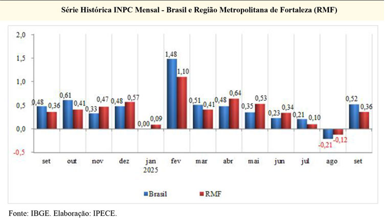 IPCA e INPC na RMF registram elevação em setembro abaixo dos índices nacionais