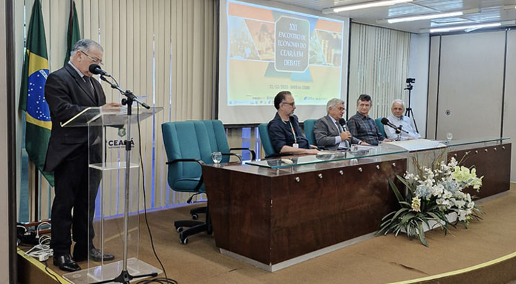 Premiação dos autores dos artigos vencedores; palestra do professor José Meneleu Neto, titular da Disoc/Ipece, sobre “A Economia do Ceará e os Desafios Geopolíticos do Comércio Mundial”, e o lançamento do livro “Sistema financeiro nacional e os bancos cearenses – Do Império ao século XXI”, de autoria do professor Henrique Marinho, marcaram o XXIº Encontro de Economia do Ceará em Debate. O evento, promovido pelo Instituto de Pesquisa e Estratégia Econômica do Ceará (Ipece), foi realizado, na manhã de hoje (11), no Auditório da Secretaria de Planejamento e Gestão (Seplag) do Estado do Ceará, no Centro Administrativo Governador Virgílio Távora.