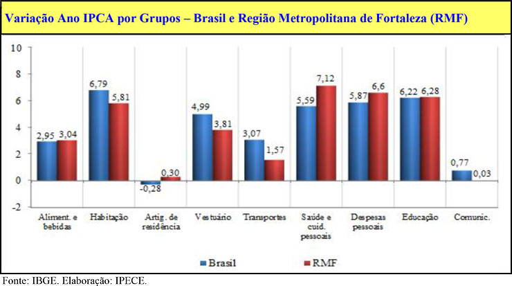 De acordo com o analista de Políticas Públicas e autor do trabalho, Daniel Suliano, em 2025, o grupo que apresentou maior alta no IPCA da RMF foi o de saúde e cuidados pessoais, com variação de 7,12%, tendo como destaque os produtos óticos, que tiveram variação de quase 16%, entre eles os óculos de grau. A menor varação variação do IPCA da RMF vis-à-vis ao índice oficial de inflação do país se deu por conta do grupo de alimentação e bebidas e transportes, grupos com peso conjunto de mais de 40% no índice total da região.