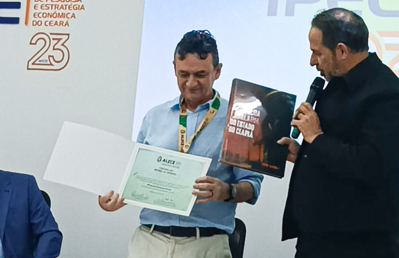 O Diretor Executivo do Inesp agradeceu a parceria do Ipece com a Alece (Inesp), que sempre foi muito profícua e afirmou que o Ipece “consolidou um modelo de produção de estudos, pesquisas e informações socioeconômicas e geográficas que subsidiam a avaliação de programas e a elaboração de políticas públicas para o desenvolvimento sustentável do Estado do Ceará”. O professor Alfredo Pessoa agradeceu a homenagem e disse que ela pertencia não só a ele, mas a todos que fazem o Instituto. Pessoa também recebeu o livro “Os 300 anos de Fortaleza”, que tem como autores Artur Bruno e Airton Farias, da Edições Inesp, que em breve vai ser lançado oficialmente.